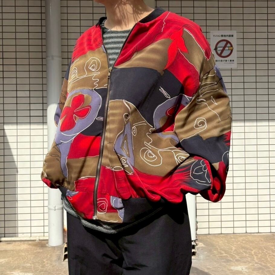 総柄ジャケット 赤ベース ボンバージャケット ピカソ アートデザイン