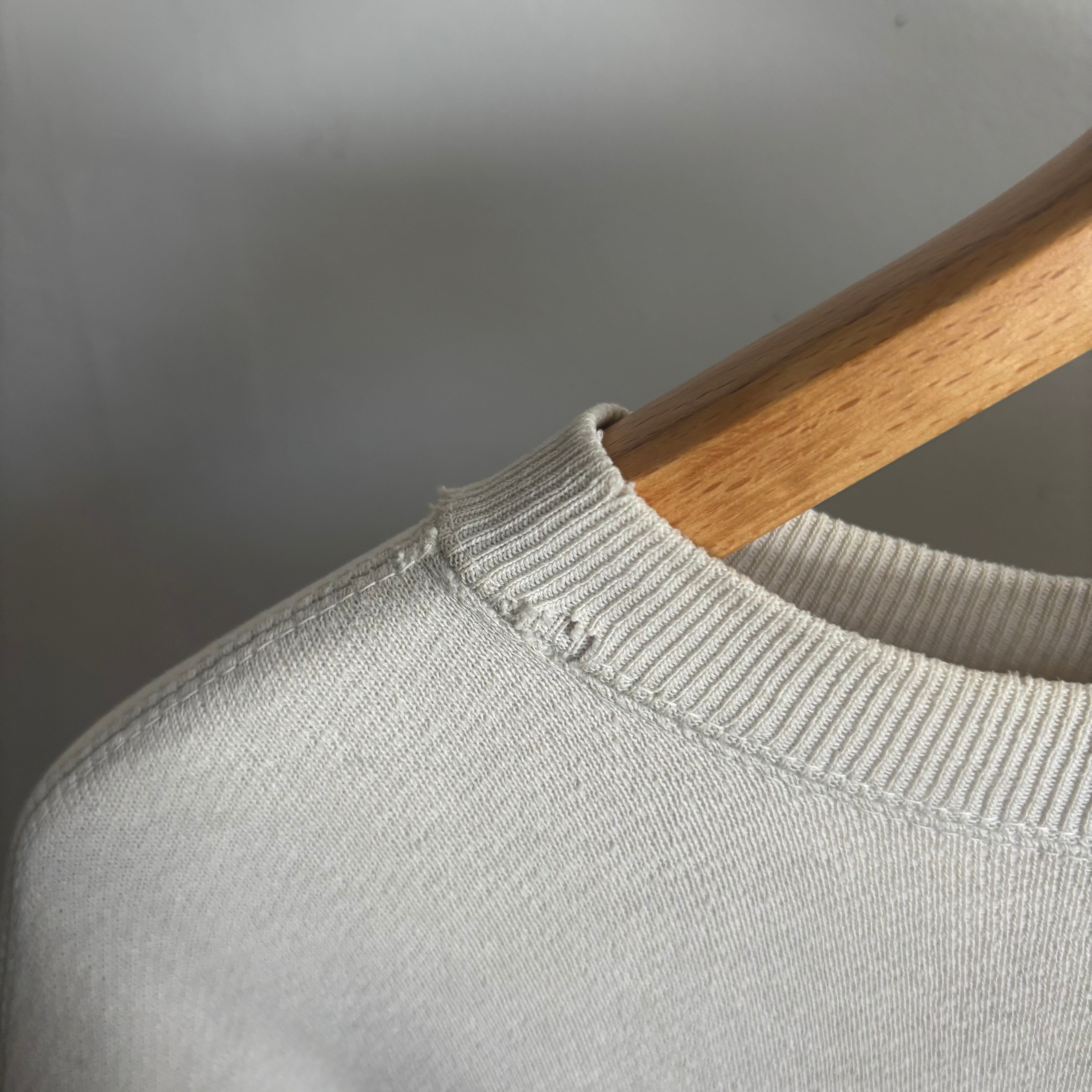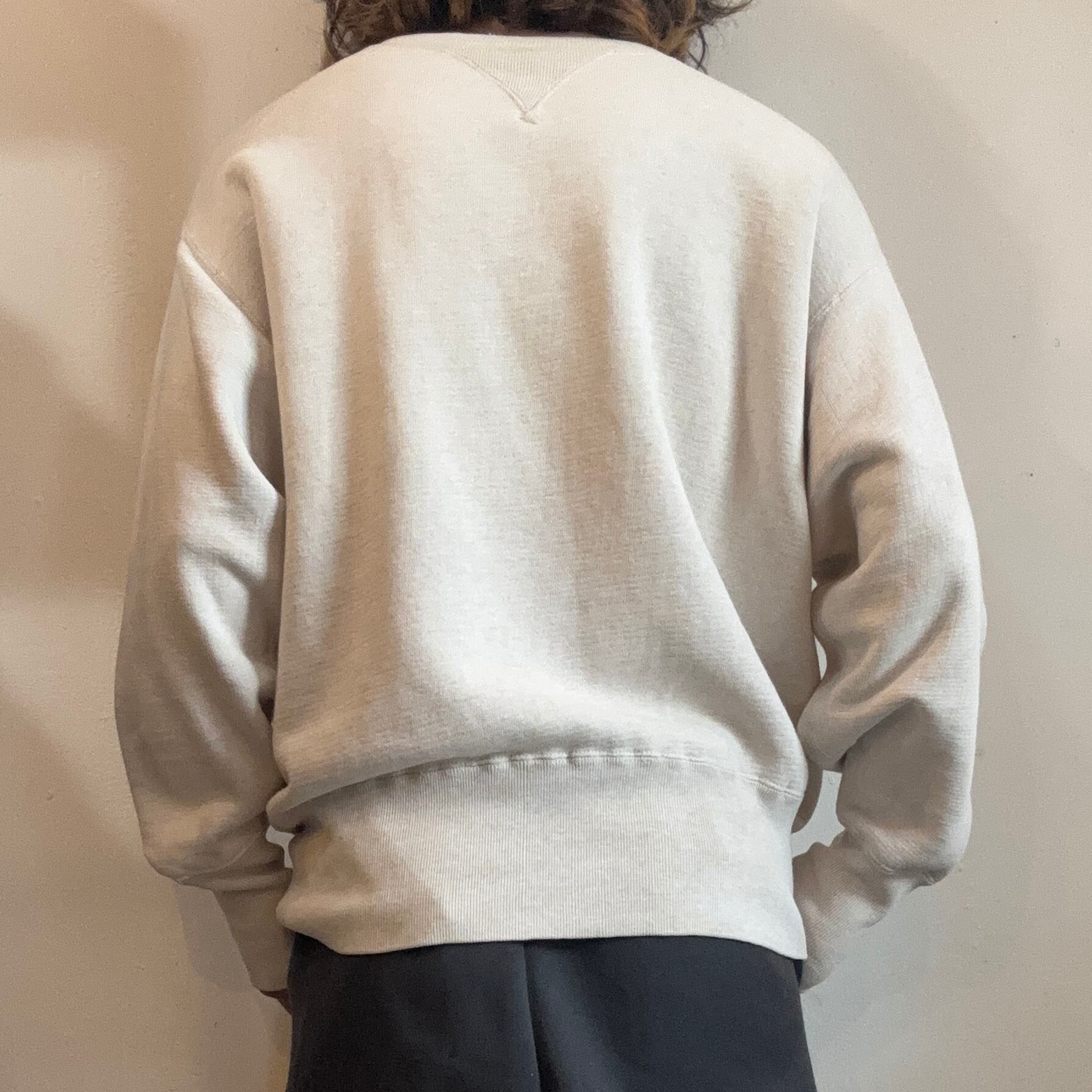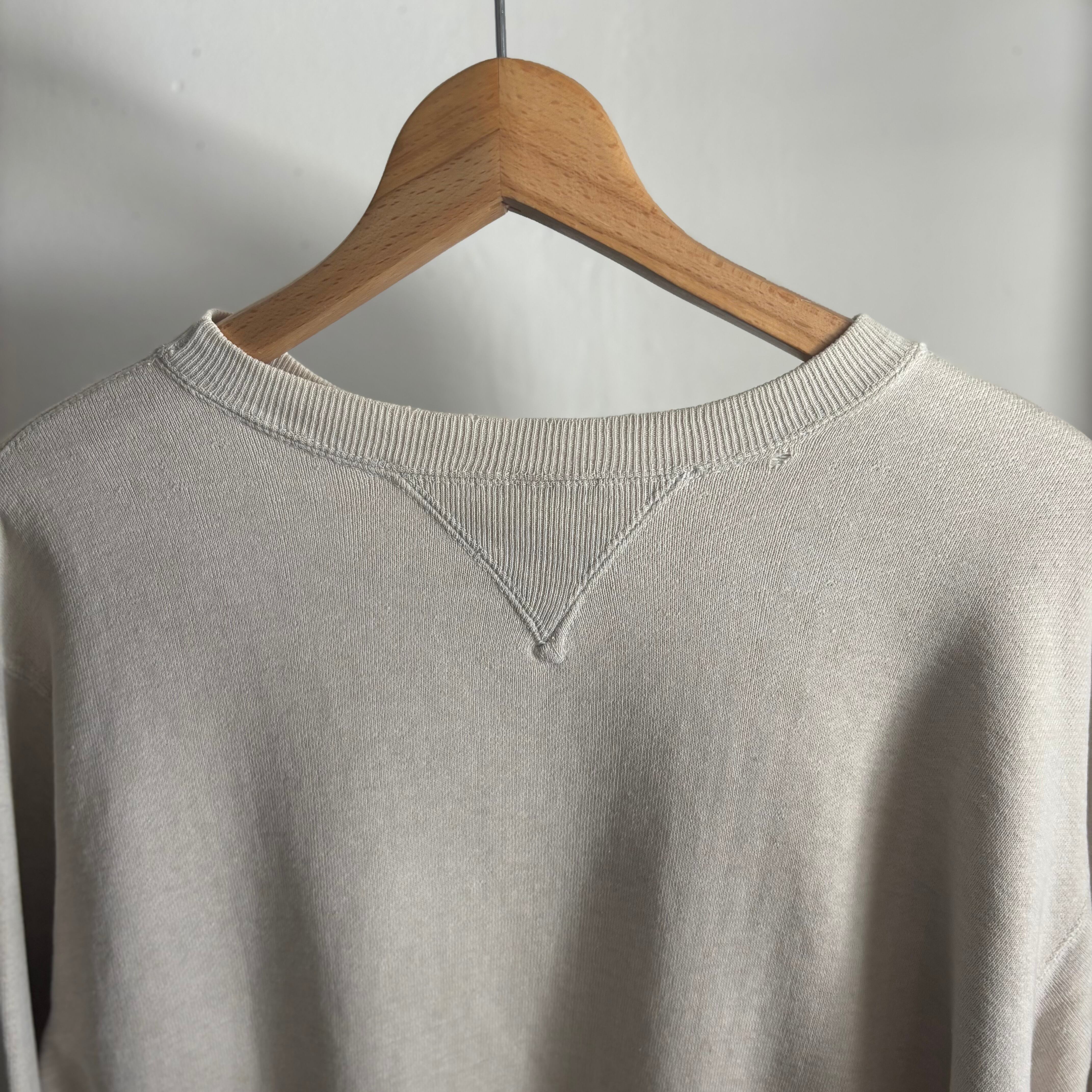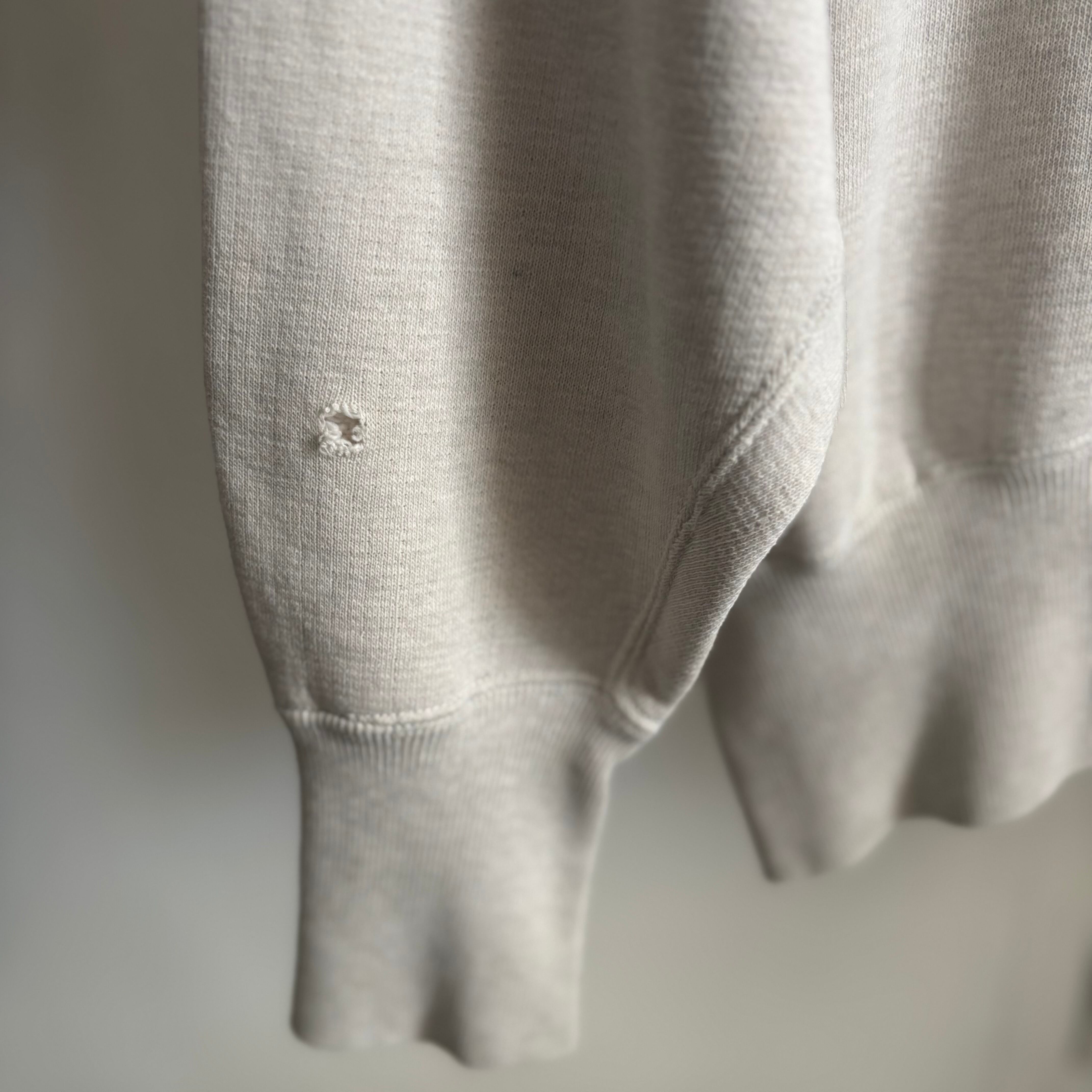 袖に穴(1センチ程度)、首リブ、アームホール付近に解れ、傷がありますが、着用に支障のあるダメージはありません。ヴィンテージ特有の風合いとしてお楽しみいただけます。