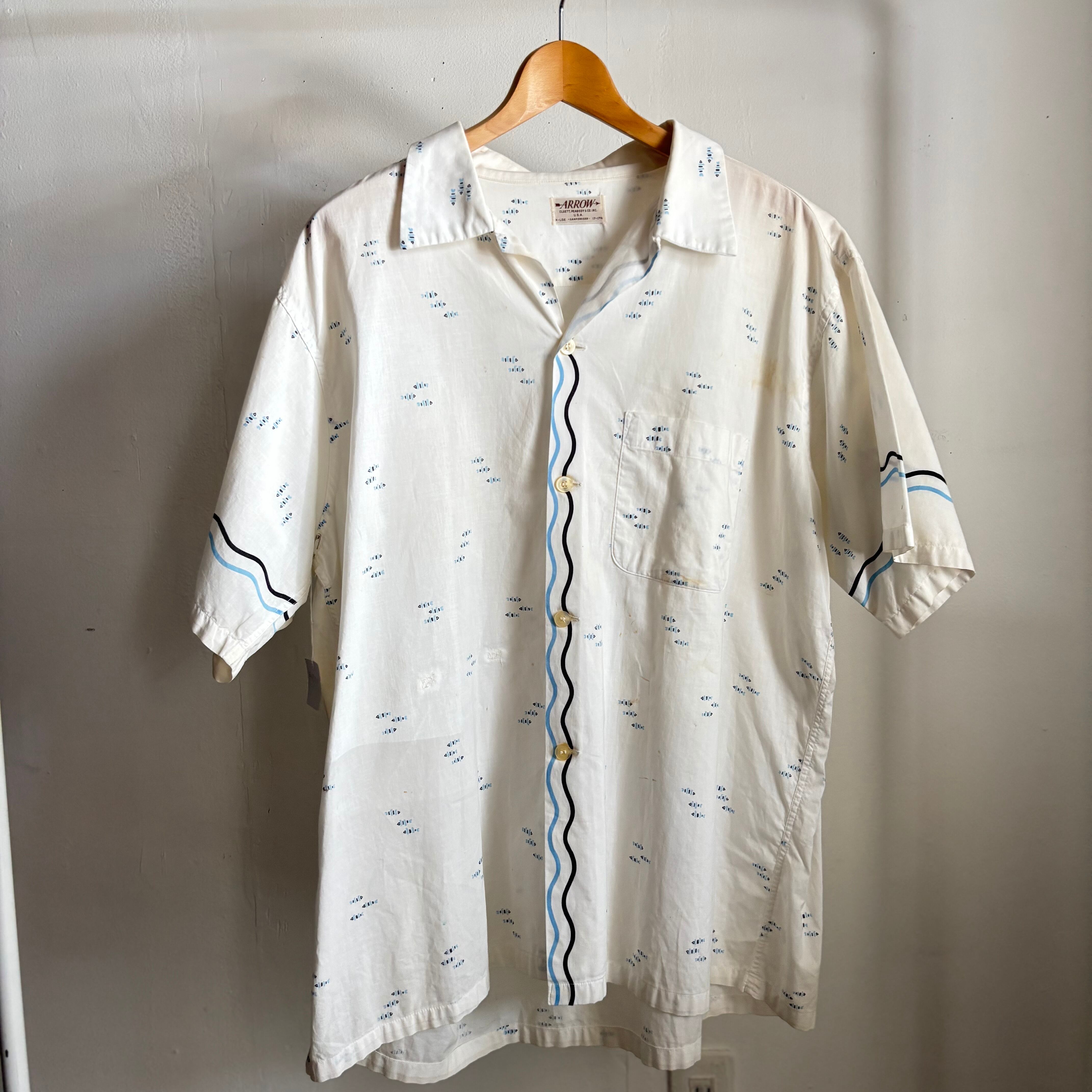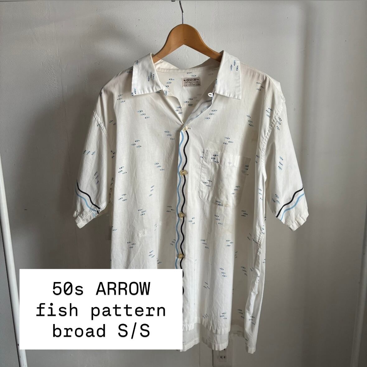 50s arrow fish pattern broad S/S shirt アロー 魚柄 ブロード 半袖 開襟シャツ