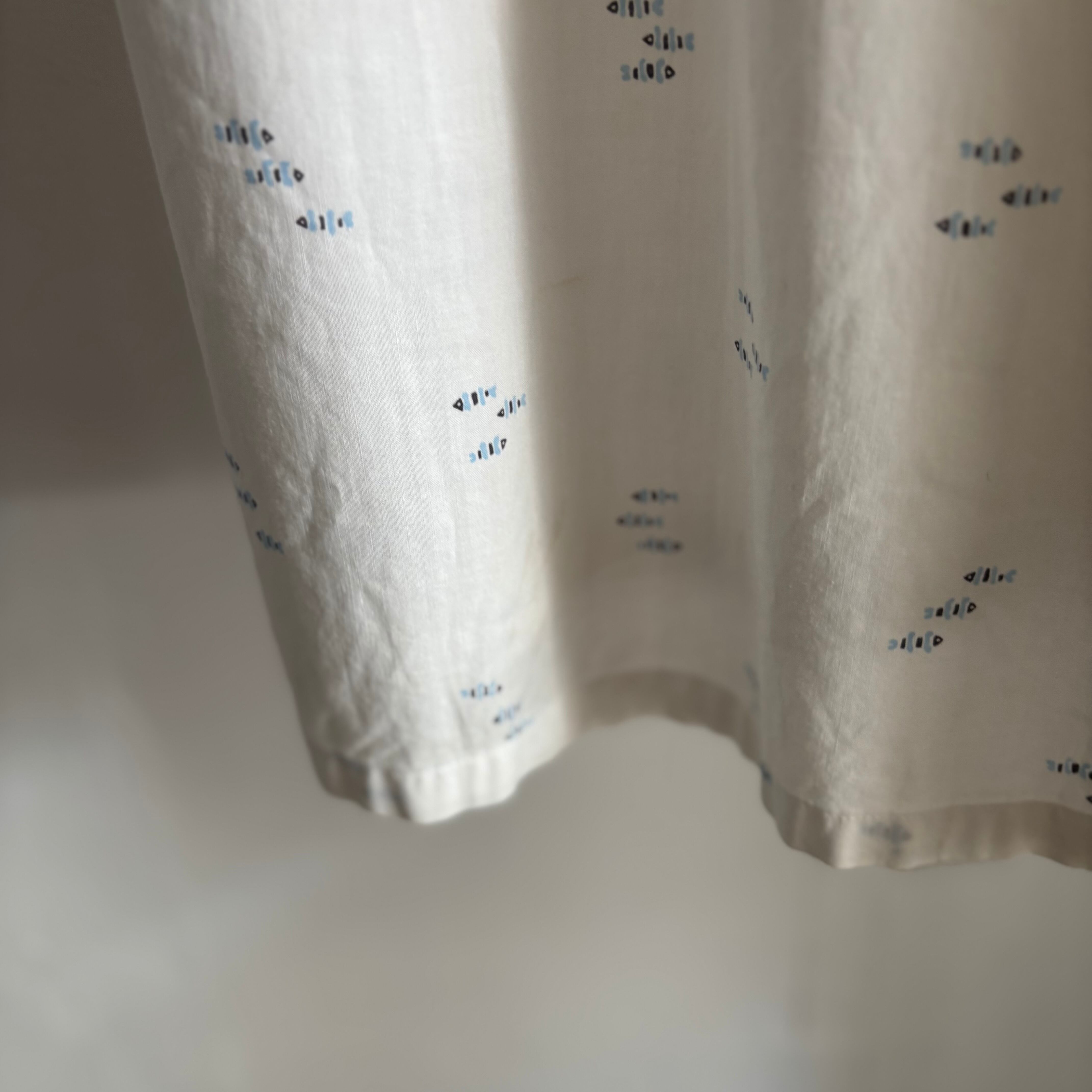 ホワイトを基調としたクリーンなボディに、魚モチーフがさりげなく施されたユニークな一着です。