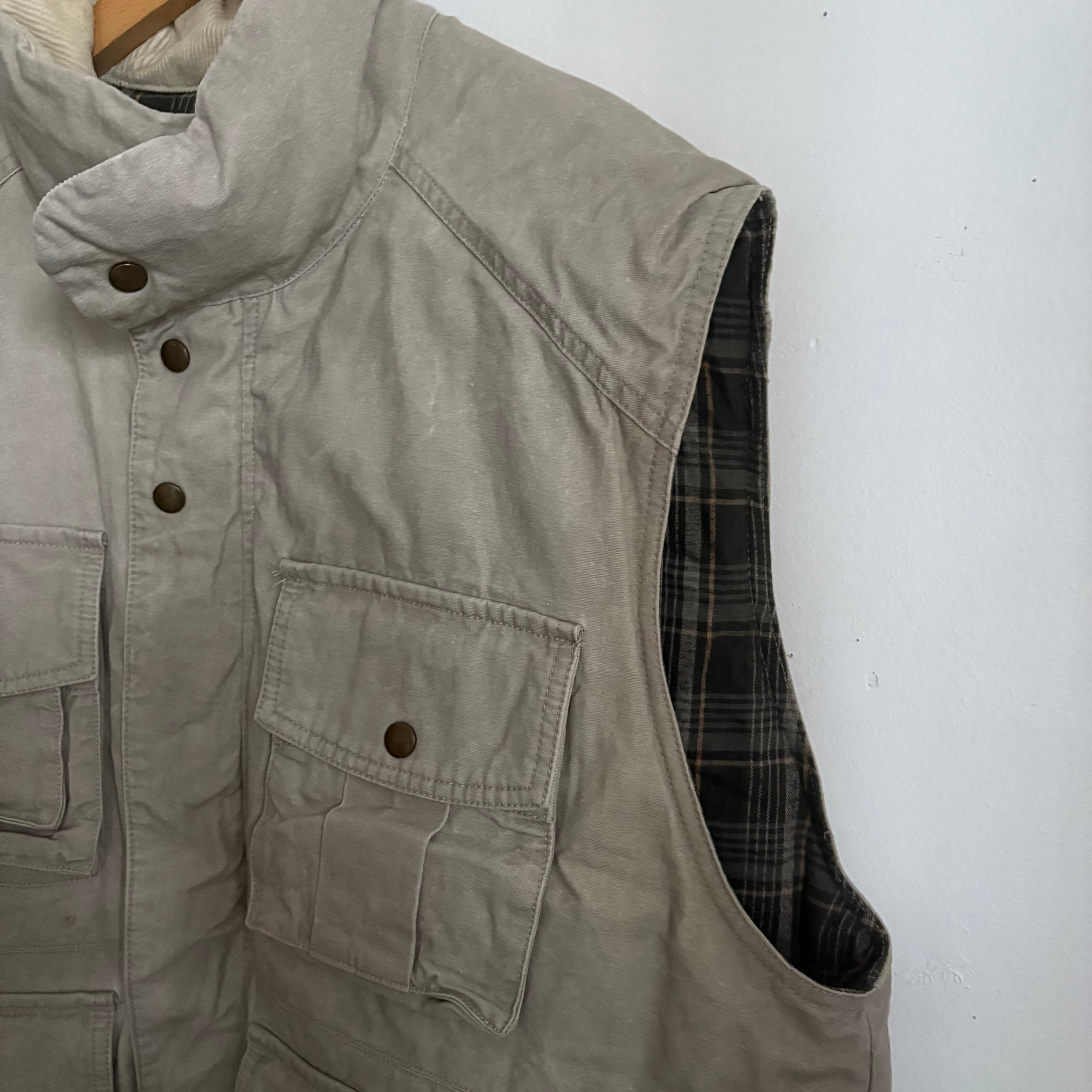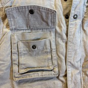 胸ポケットが二重になっていたり、お腹のポケットもフラップ付き、さらにサイドから手が入れられるようになっており、機能性に富んでいます。ライナーのチェックのカラーも◎