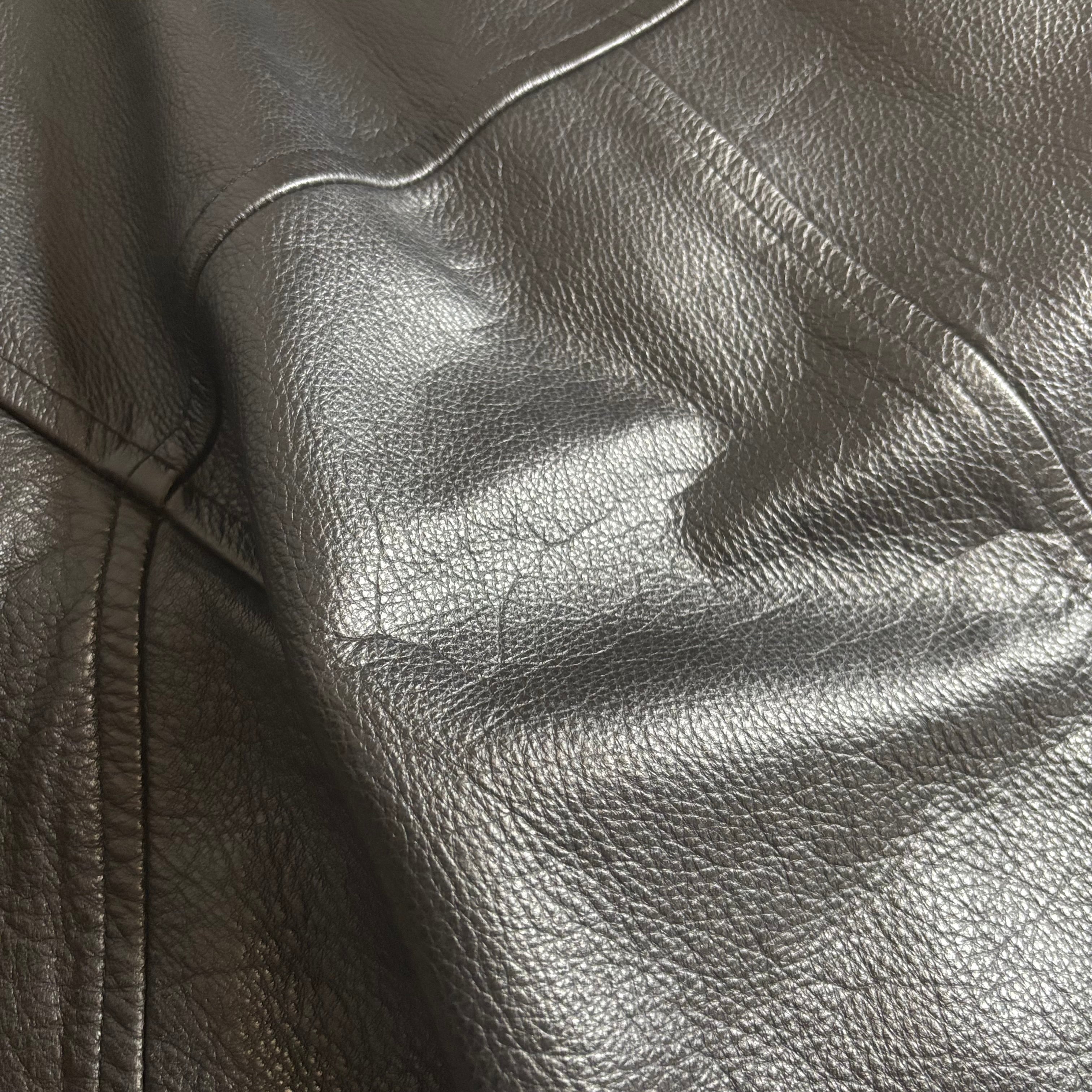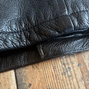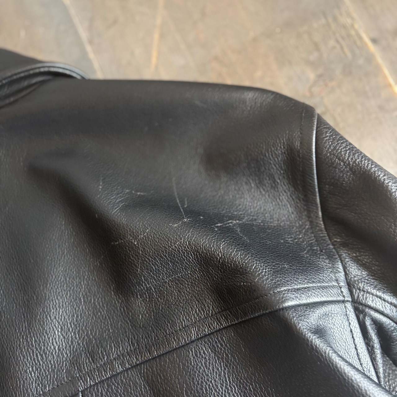 背面、袖口、裾などにレザーのダメージがございますが着用には問題ない程度です。レザークリーム等で補修等も可能だと思います。