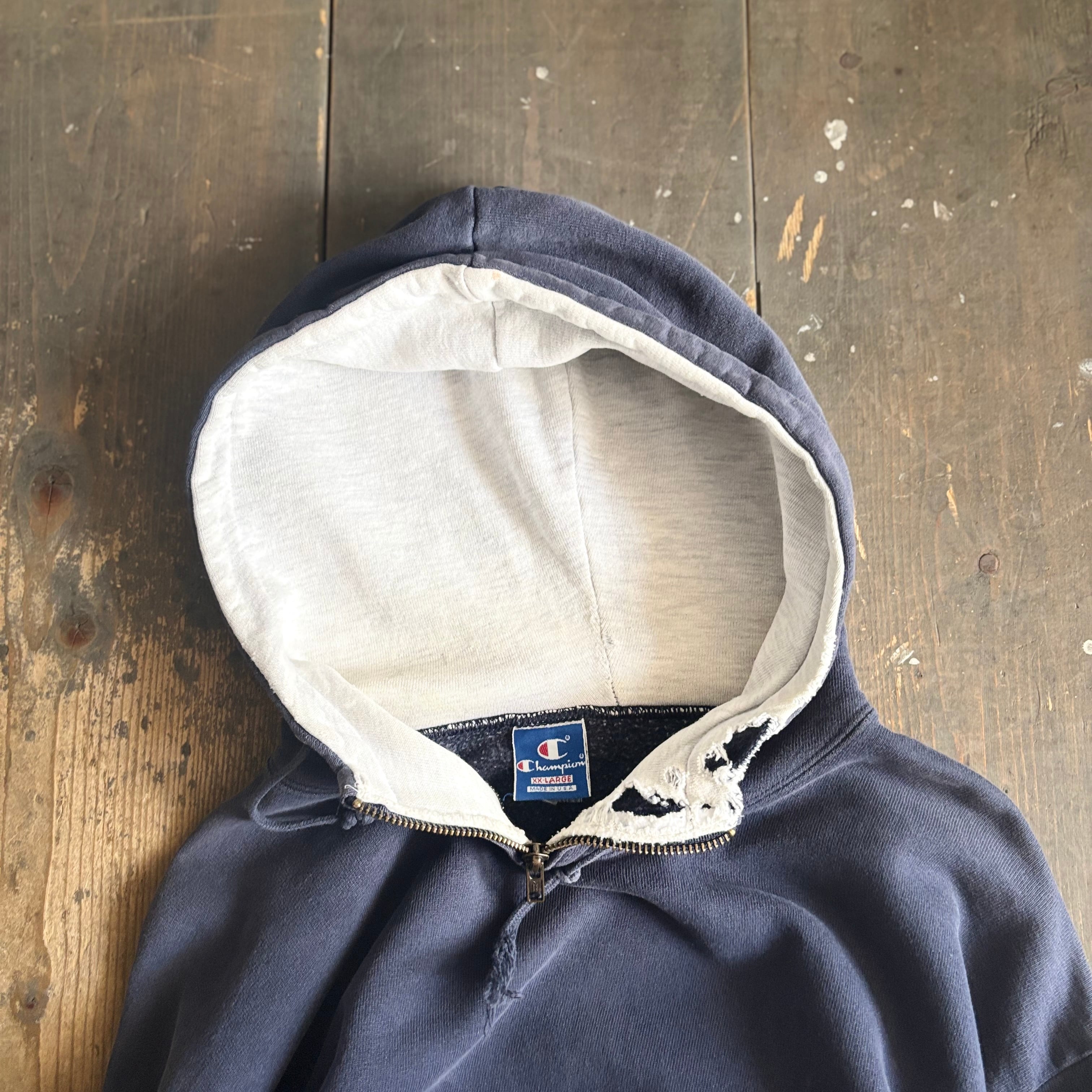 90s Champion zip neck hoodie navy - XXL