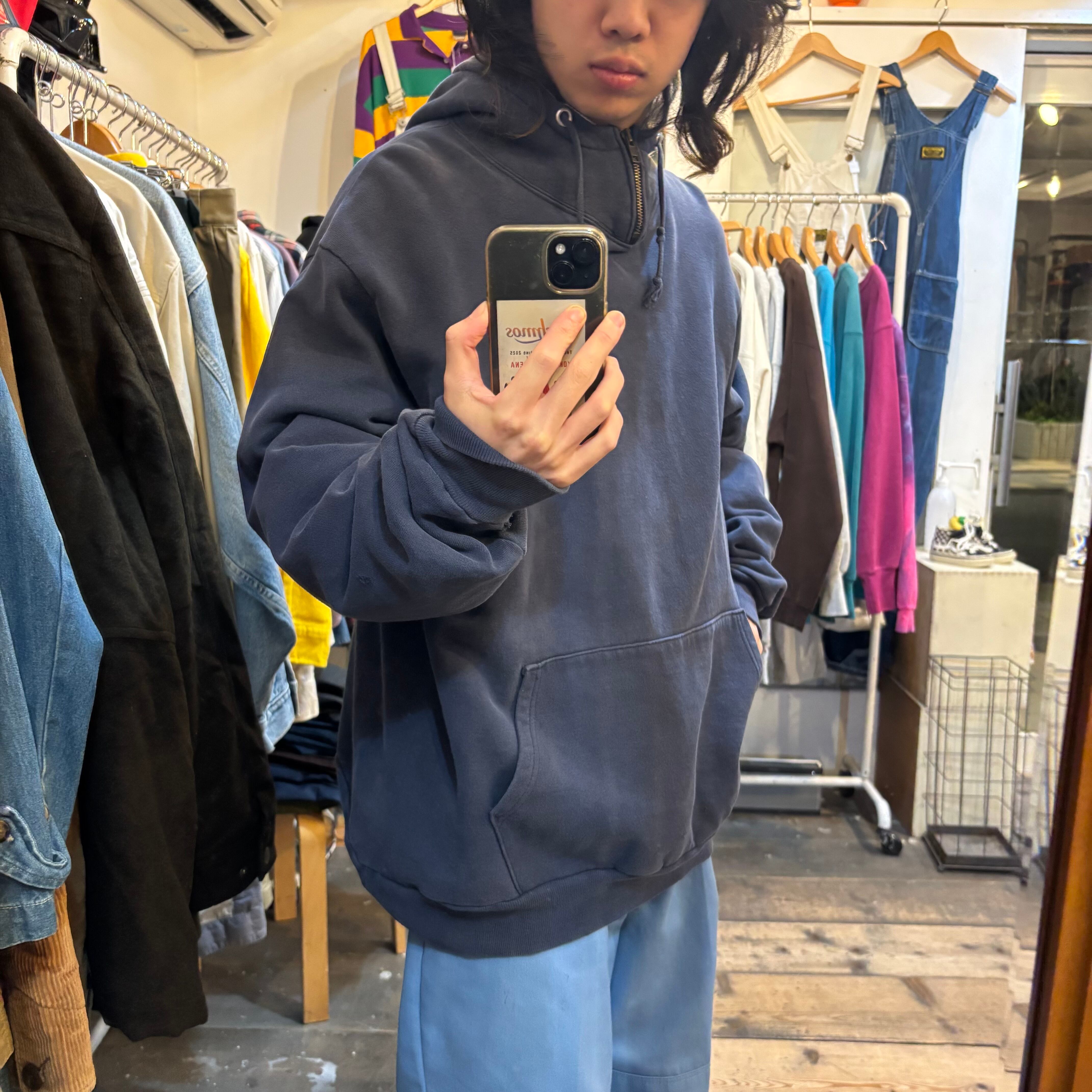 ネック部分のみジップタイプの珍しいデカフーディ