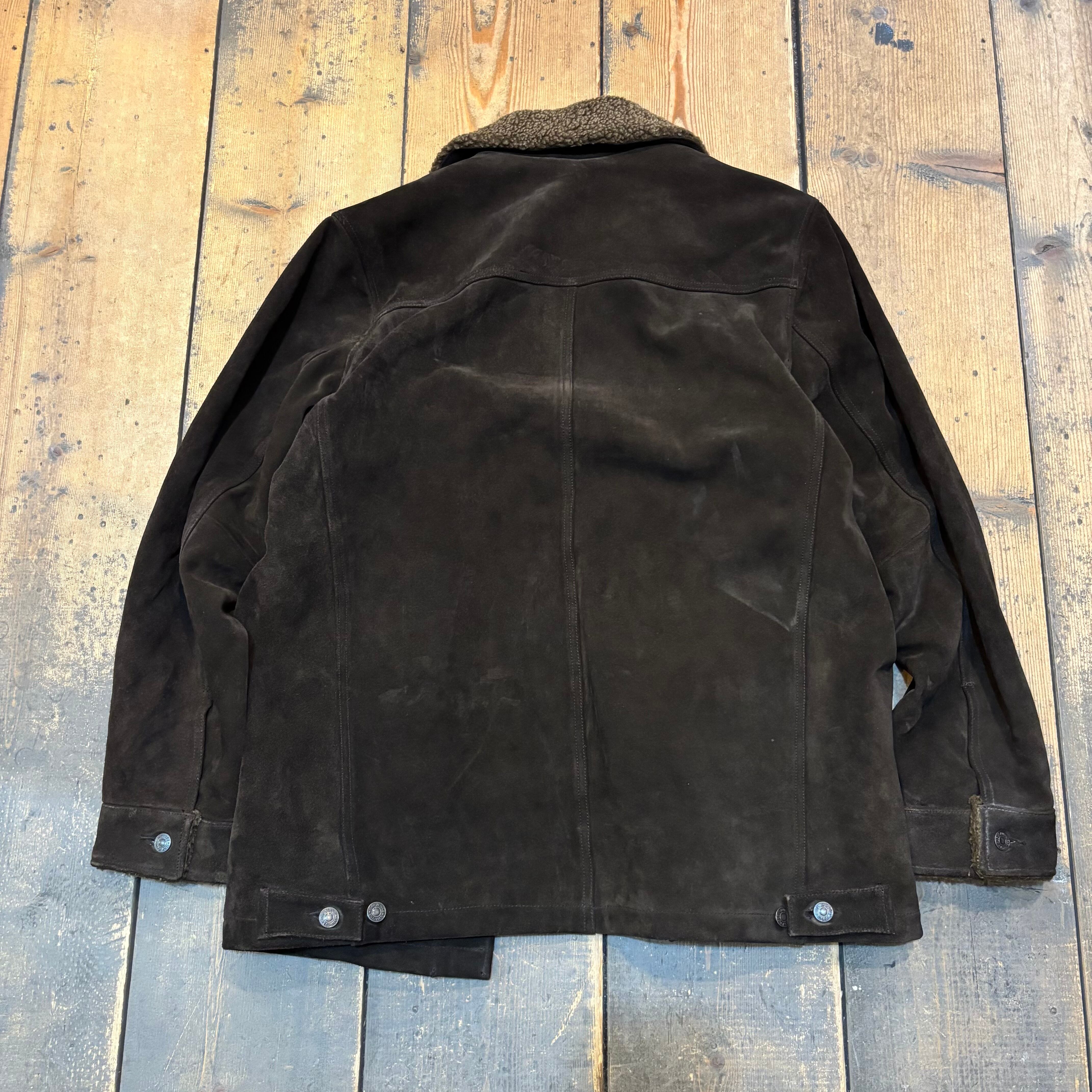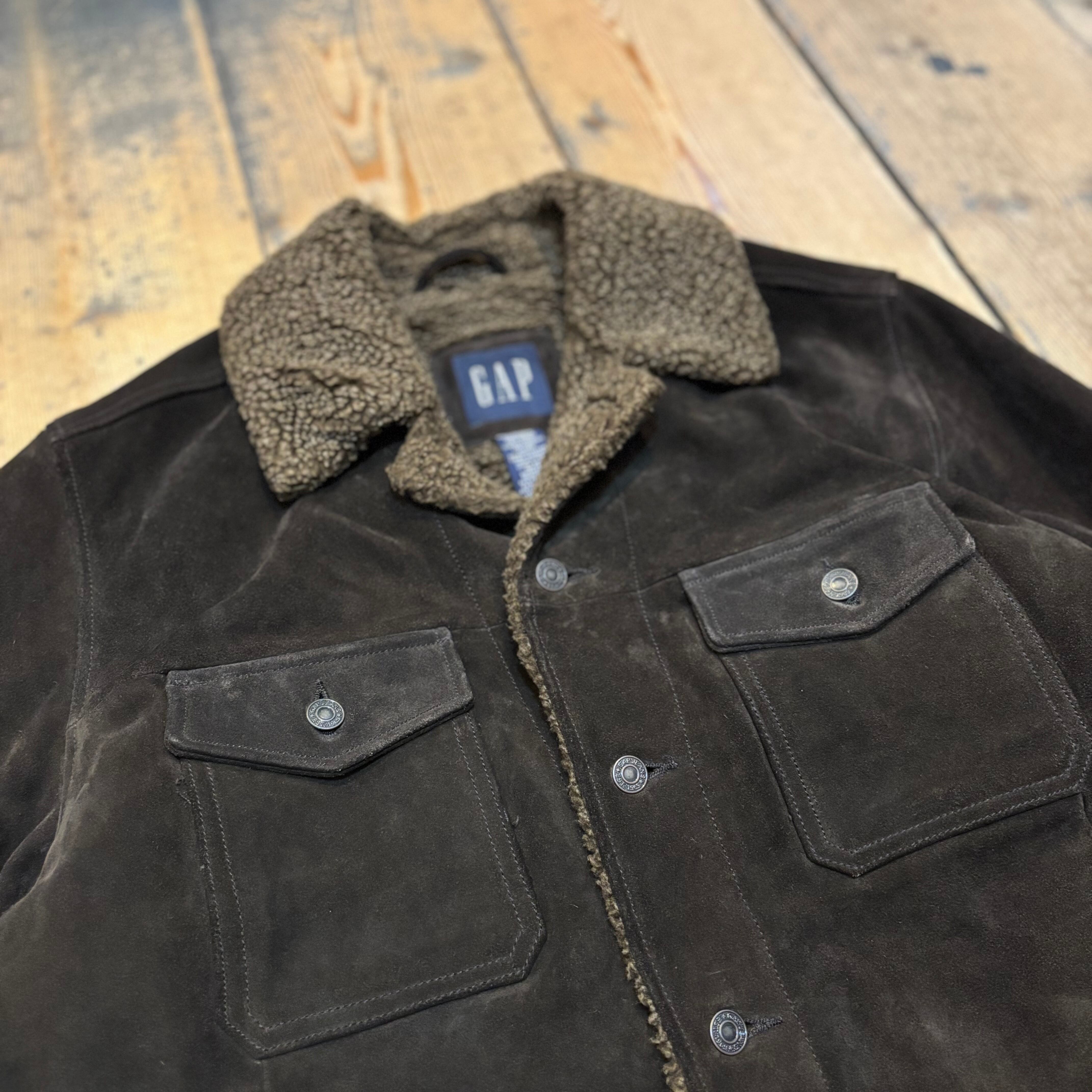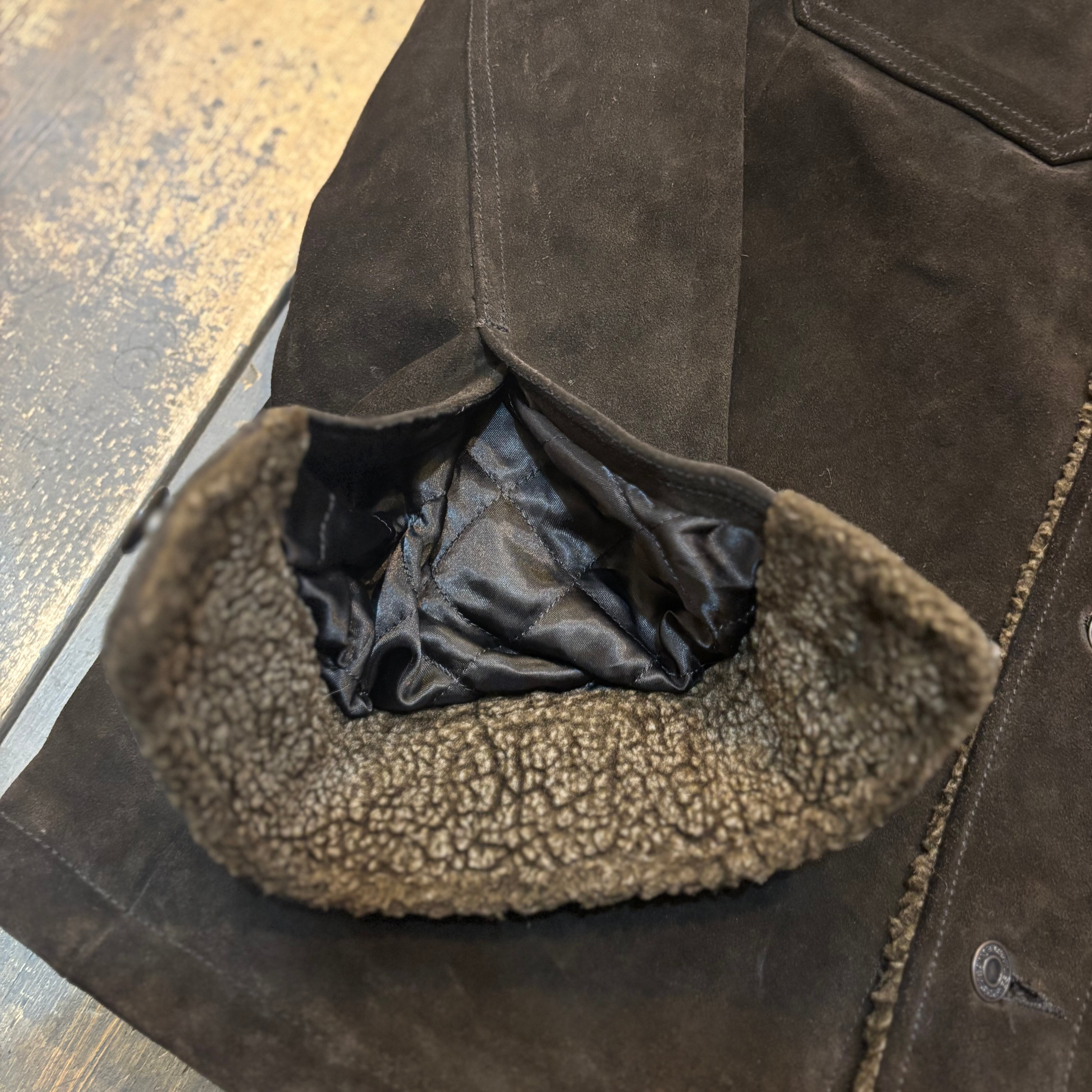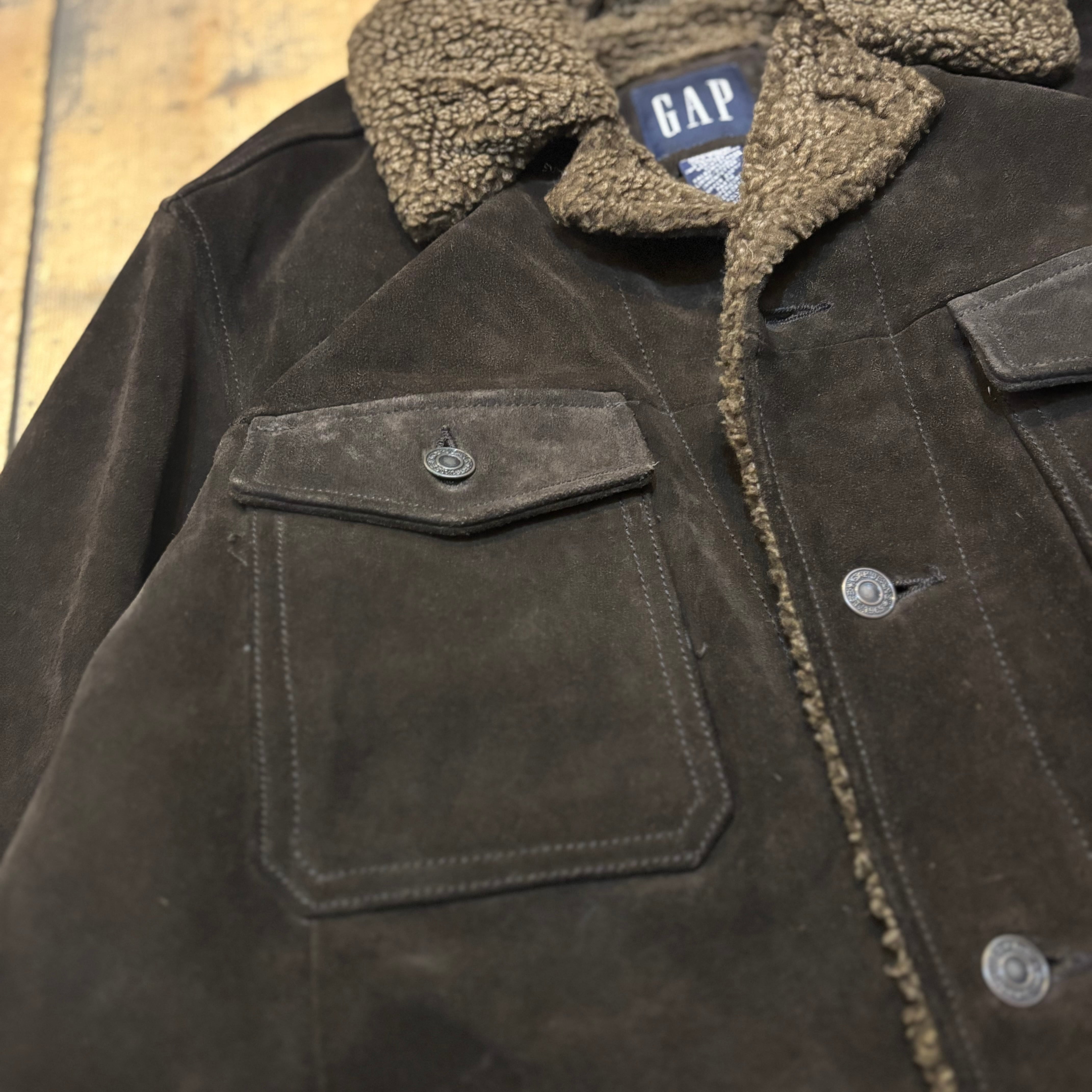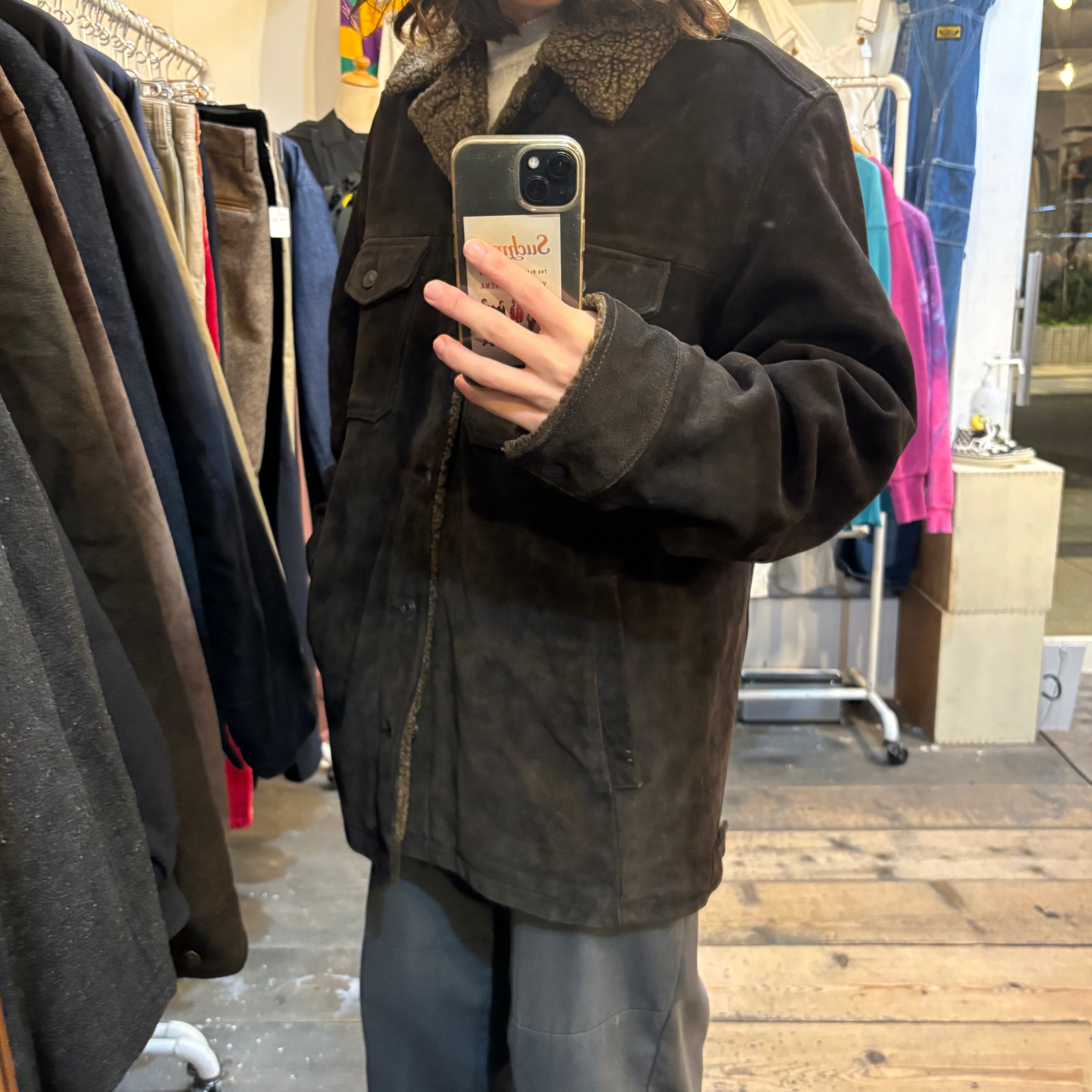 オールドのギャップのスウェードジャケット同色系統のボアライナー付きで、ラペルになってるので、ボアの見える面積も広く、暖かさは勿論、可愛らしい雰囲気の出る1着です。