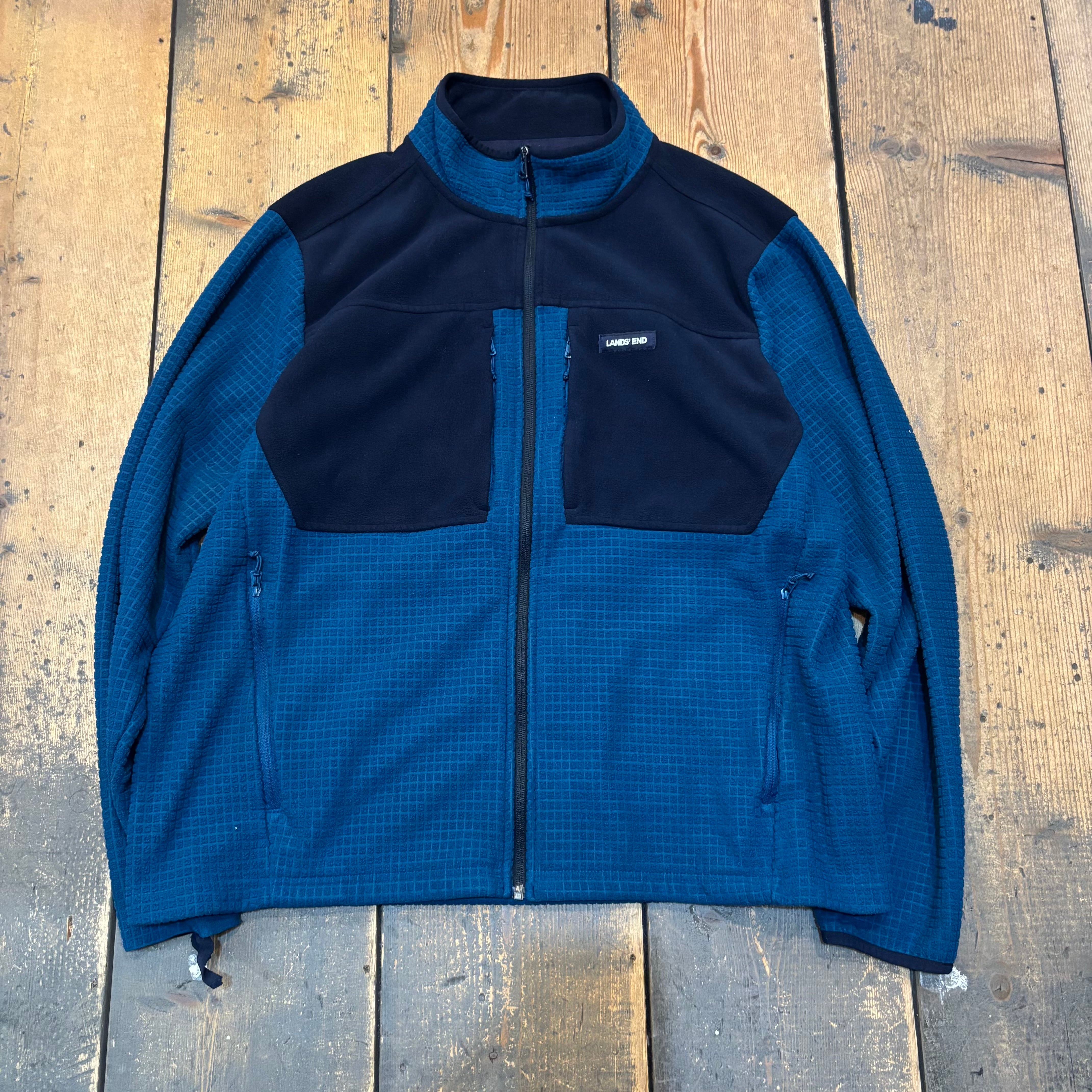 ランズのフリースフルジップフリース、暗めのブルーで主張激しすぎない、使いやすい1着です。