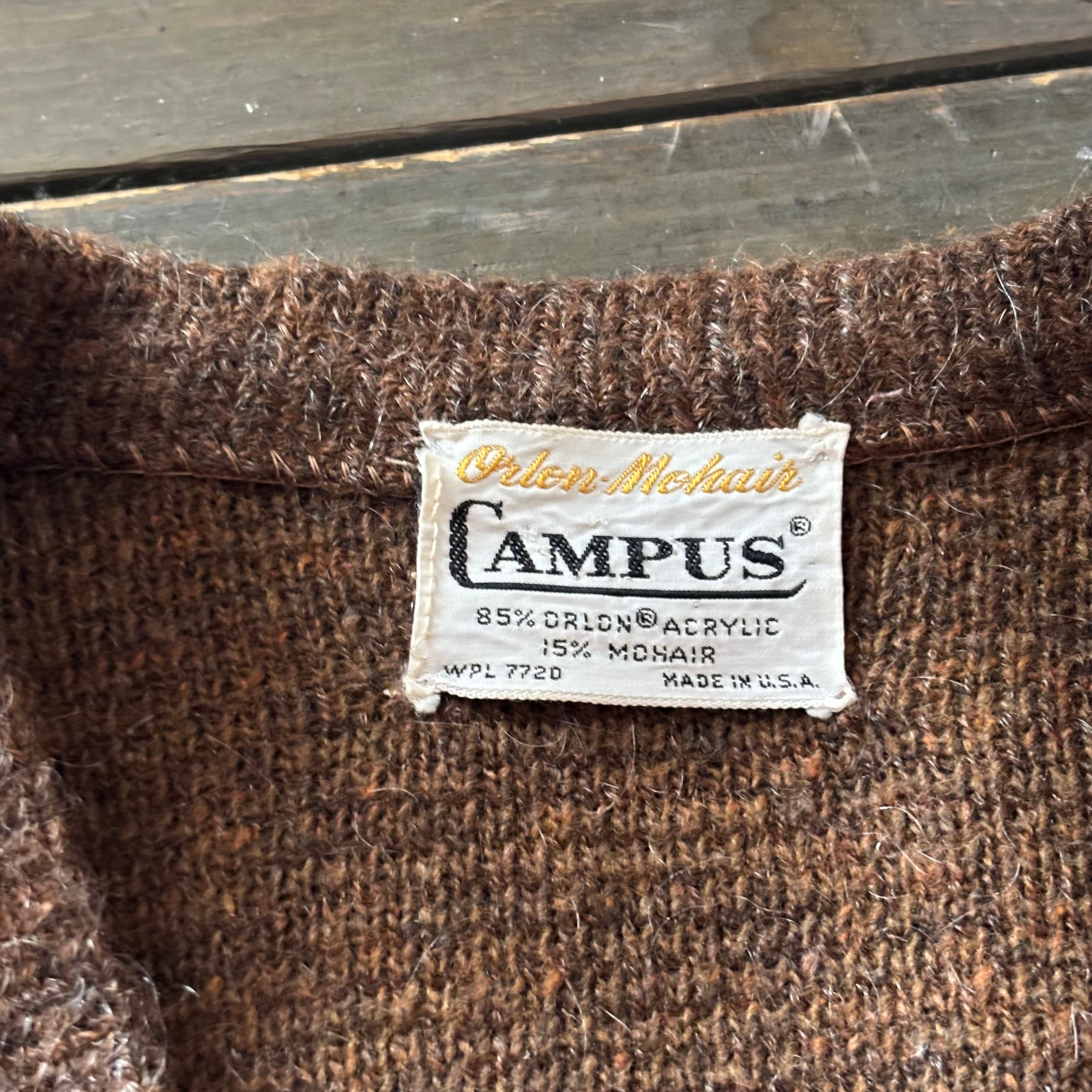 【GOOD CONDITION】60s CAMPUS Mohair Cardigan brown mix