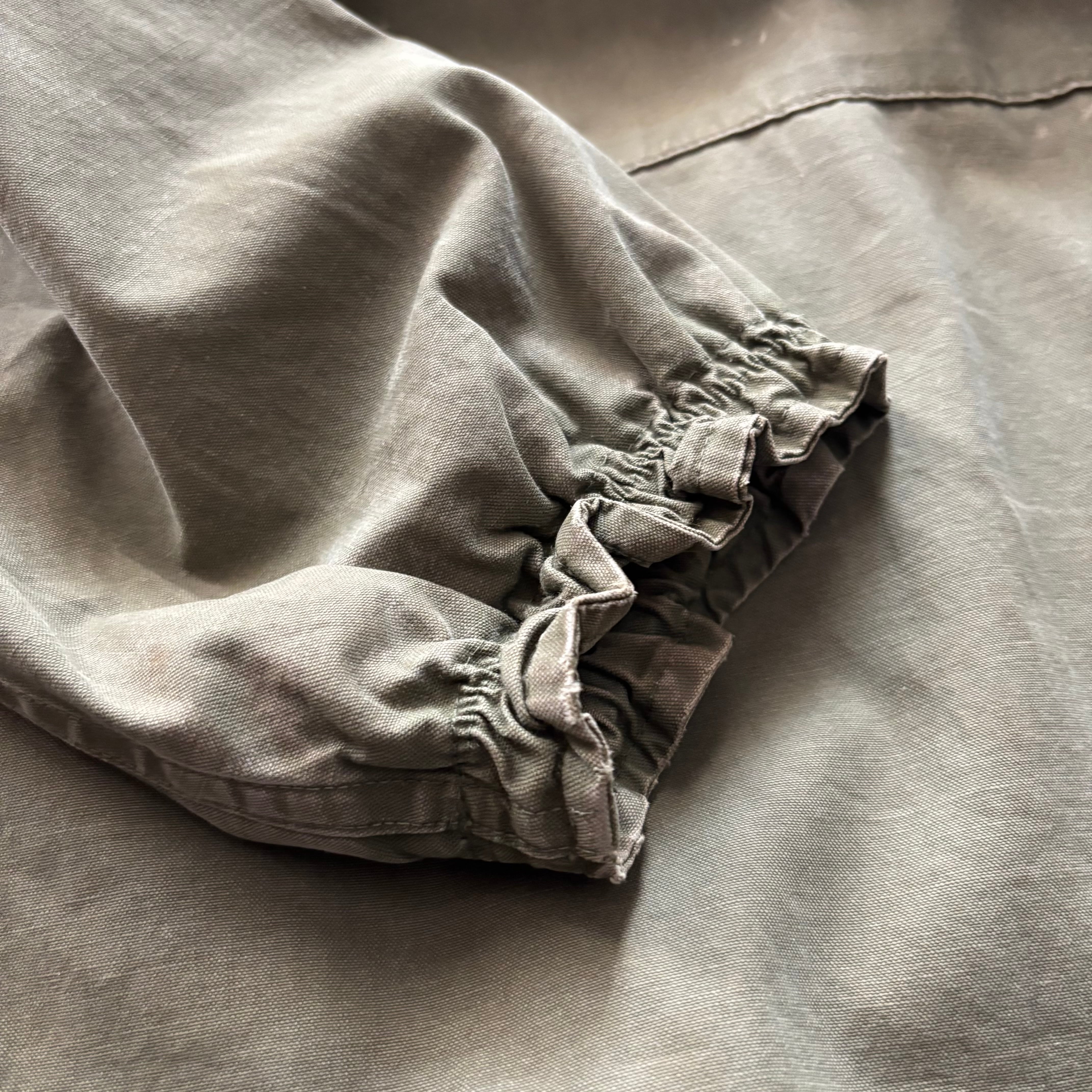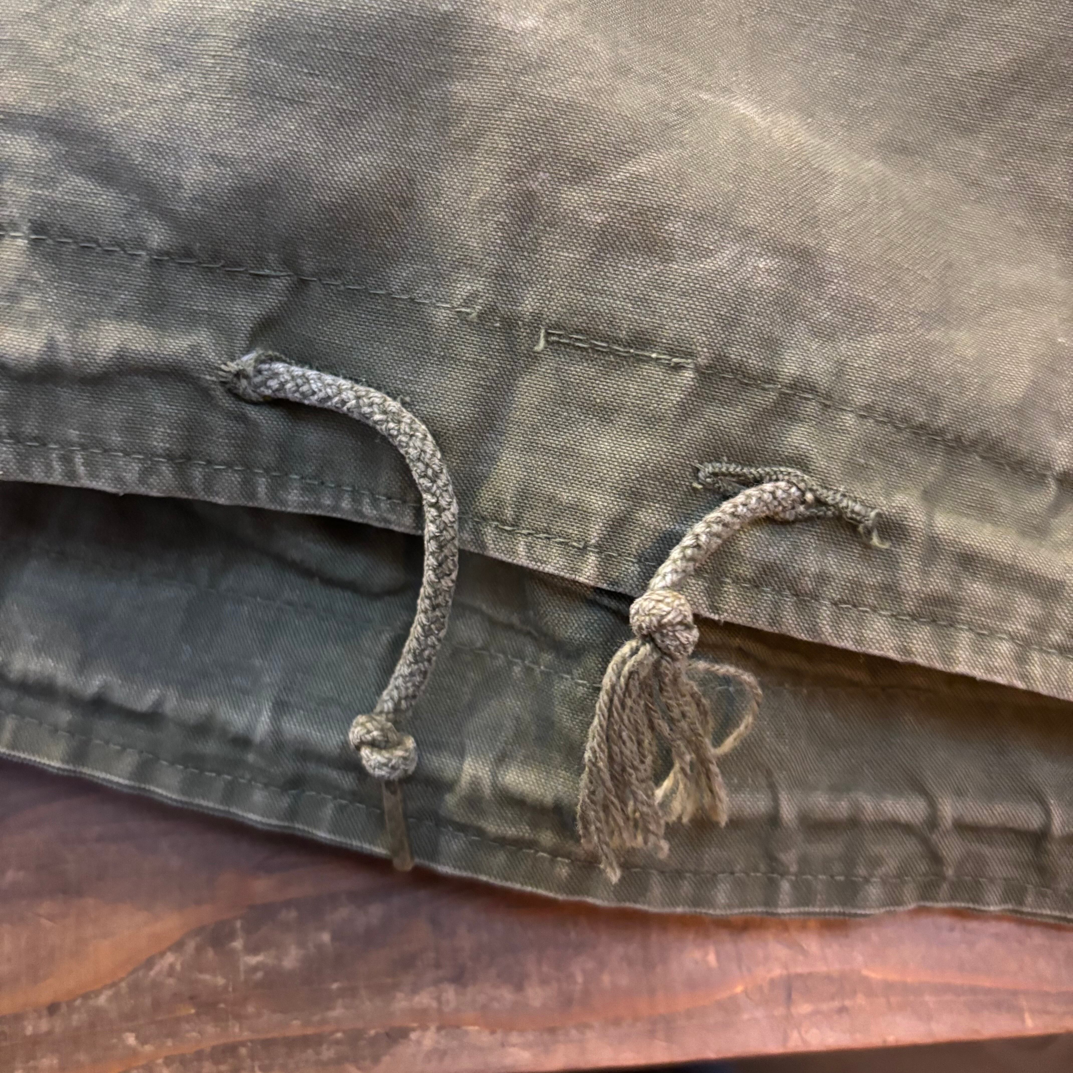 ミリタリー山岳部隊スモックをルーツに持つアノラック型でアウトドアやハンティング用途へ用いるために軽量化された服。