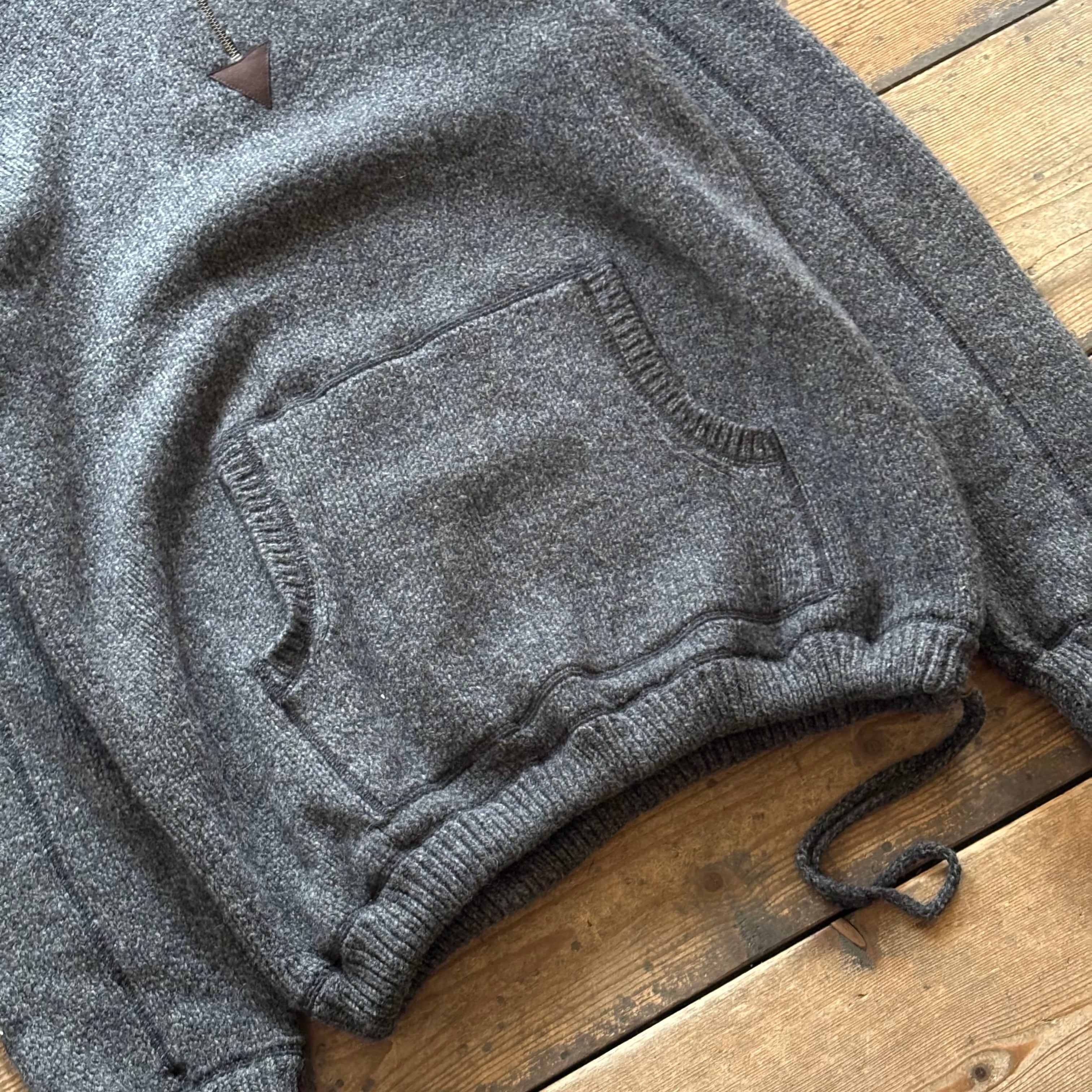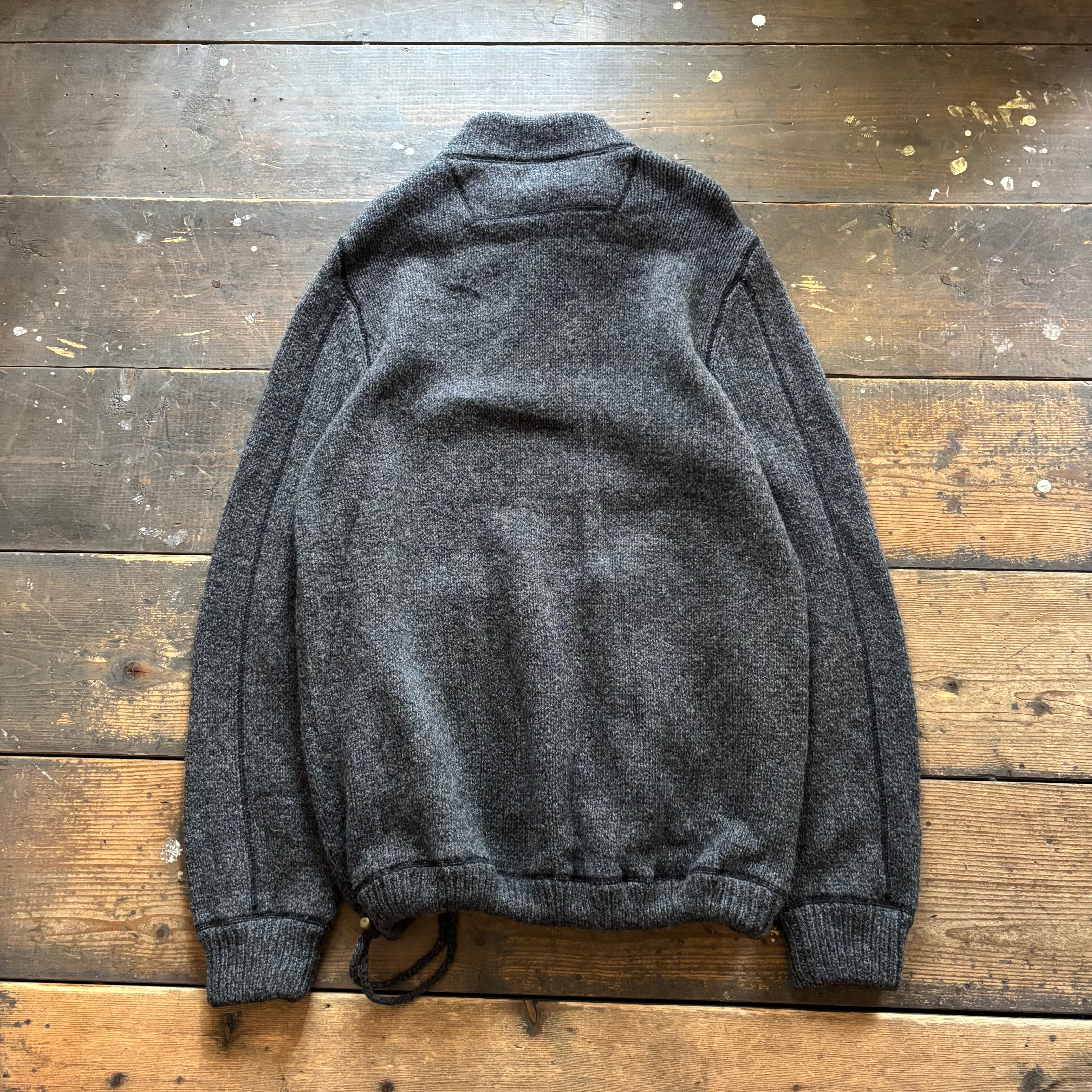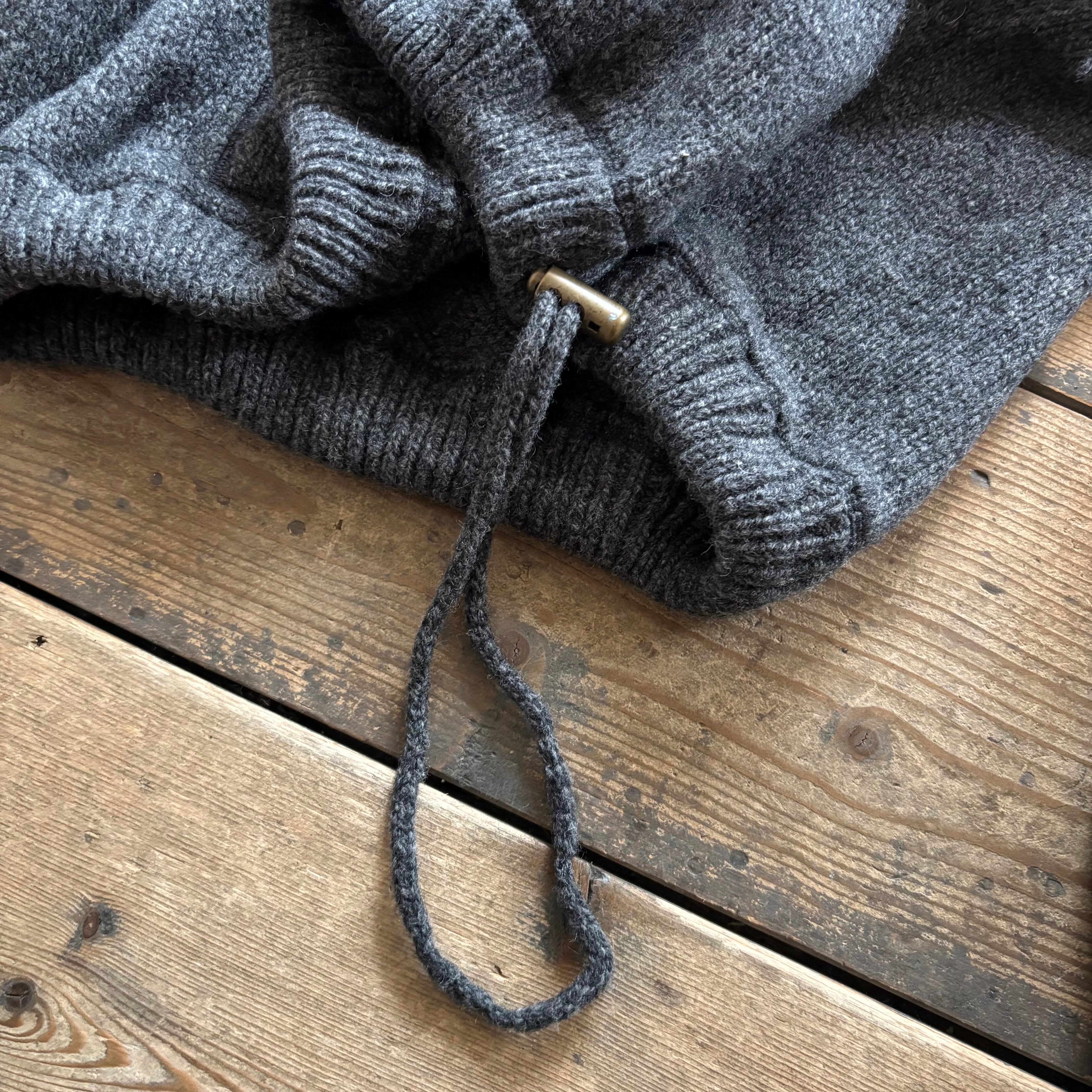 ハーフジップドローコード付きで、ニットにしては珍しいディティールです。